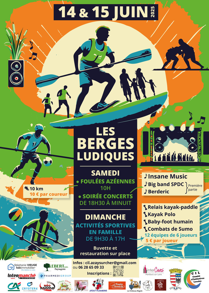 Petites Foulées (5km) et Grandes Foulées Azéennes (10km) sur les Berges du Cher dans le cadre du weekend les Berges Ludiques : passage sur les bords du Cher et dans les bois autour des châteaux.