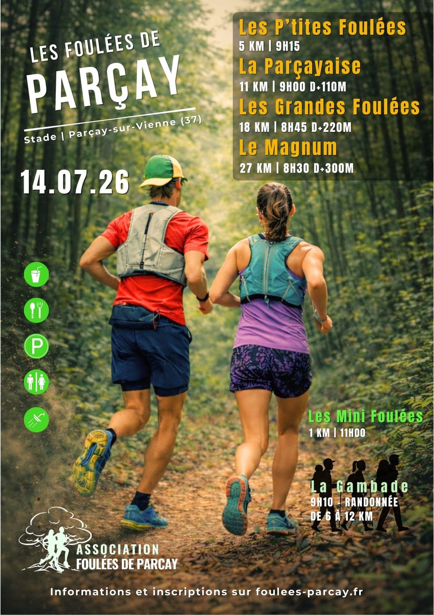 Tous les ans, le 14 juillet ont lieu les Foulées de Parçay-sur-Vienne.